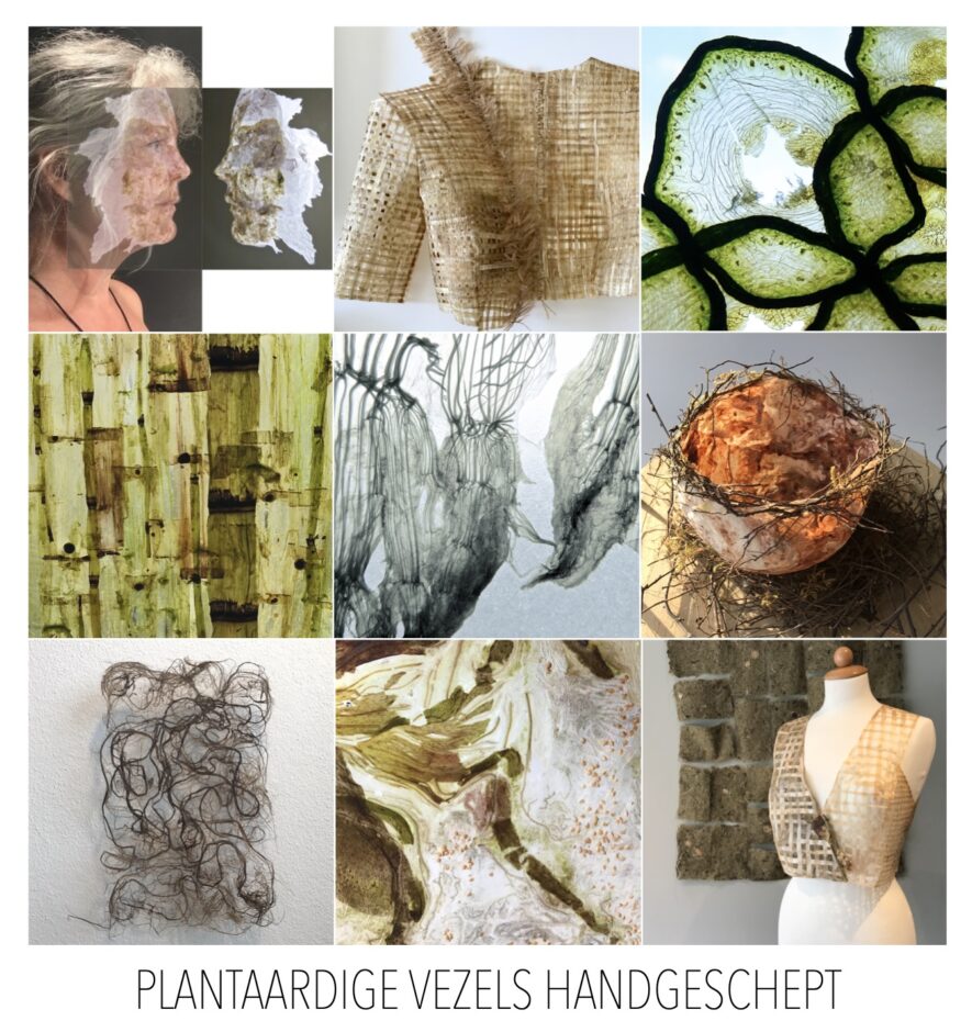 Afhankelijk wat het seizoen te bieden heeft, verzamel ik van te voren verschillende grondstoffen, zoals vezelrijke resten van appels, bleekselderij, gras, knoflook en paardebloem. Tijdens de les gaan we de vezels hiervan knippen, koken en spoelen. Daarna volgt het proces van scheppen, persen en drogen.